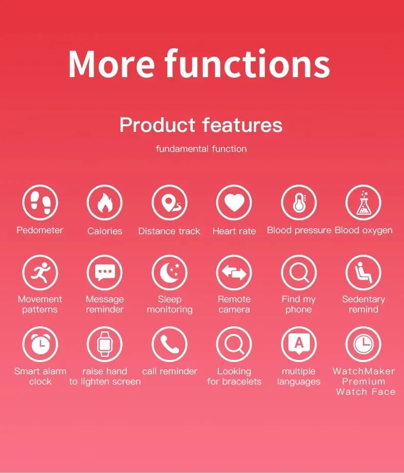 - Function : Passometer,fitness tracker,sleep tracker,Message Reminder,Call Reminder,Remote Control,Push Message,Alarm Clock,week,Heart Rate Tracker,Calendar