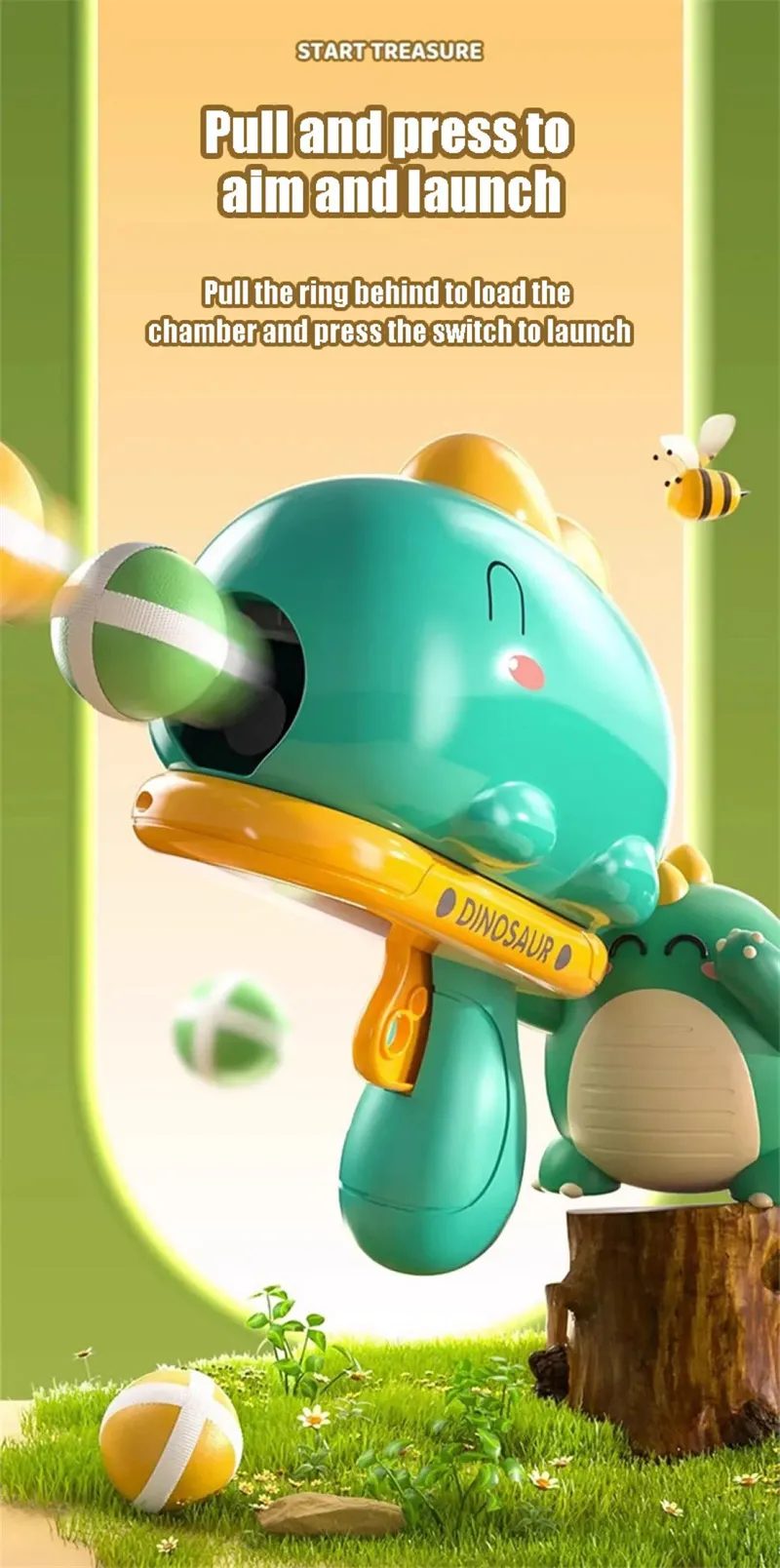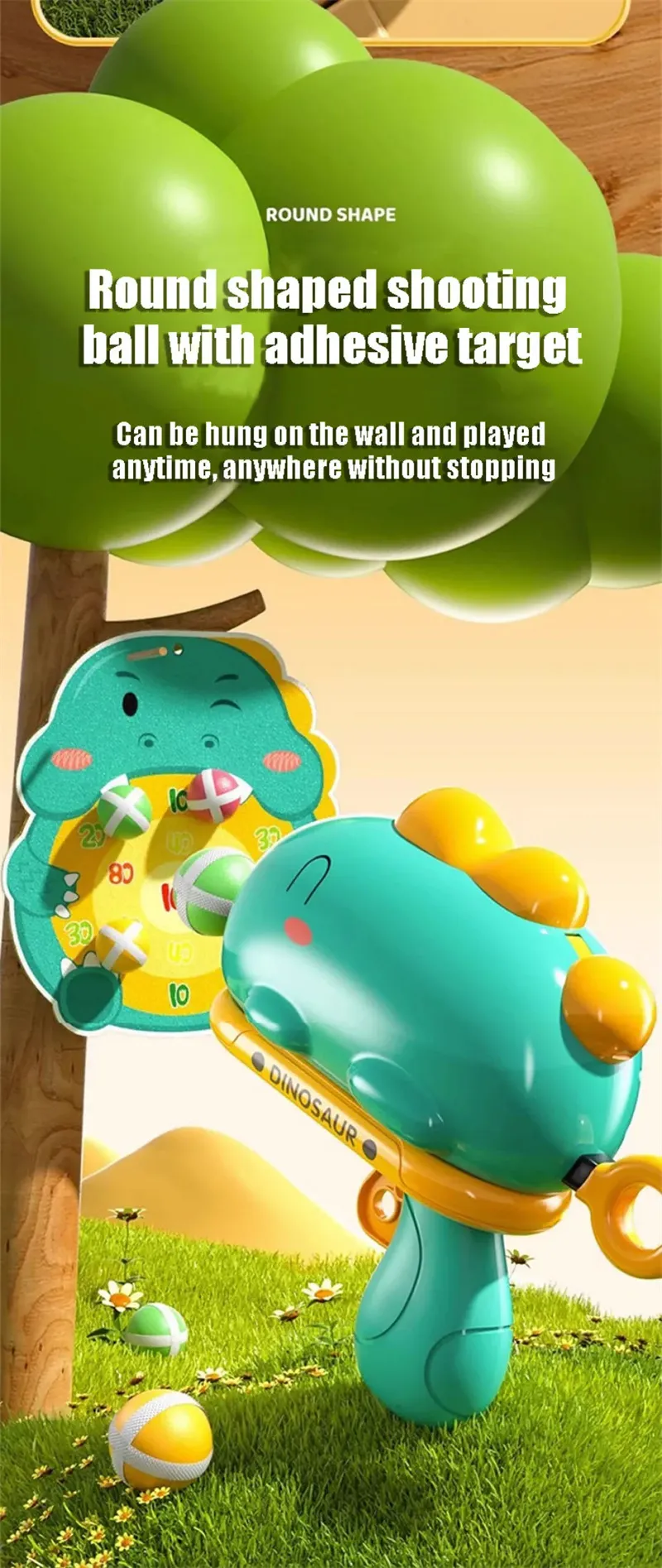 【High-Quality & Safe Materials】- Our sticky ball toys are made of soft, durable fabric that won’t hurt kid’s hands, and the non-toxic ABS materials are safe for kids to play with. The sticky balls have strong stickiness and can shoot quite a distance, making them perfect for target practice and improving hand-eye coordination. Package includes a cute cartoon dinosaur design shooting gun,1 Launcher, 1 Dinosaur Dart Board, 6Sticky Balls.