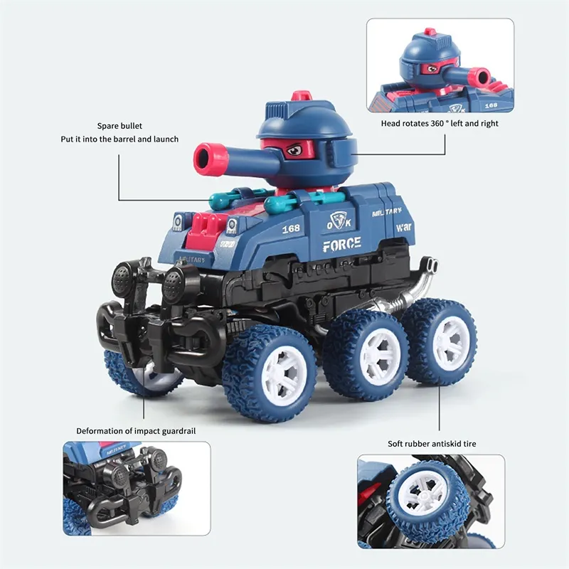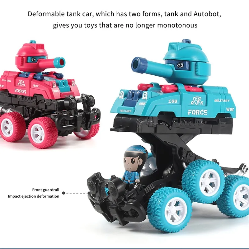 [Two-in-one toy car] When the front wheel of a running tank collides, the tank will immediately deform and call it an , which can be used as a tank to drive and perform spinning stunts as an , which is very fun.