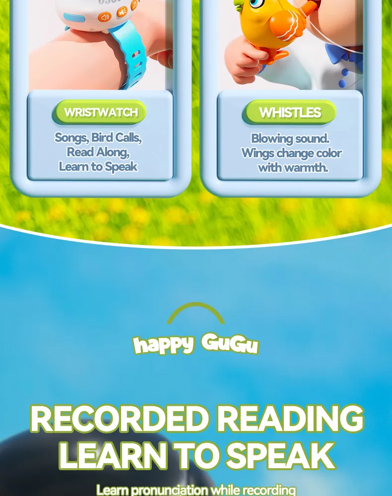 Specifications of Electric Bird Wearable Watch Voice Interactive Toy Children’s Educational Repeater Watch Music Whistle Fun Toy Children’s Gift